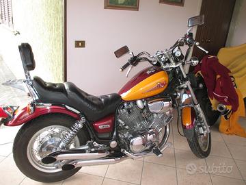 VENDESI YAMAHA VIRAGO 750 KM 61000 COLORE ROSSO E GIALLO TENUTA DA AMATORE CON TUTTE LE CROMATURE BRILLANTI. SEMPRE TAGLIANDATA GOMMATA.