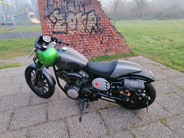Yamaha xv 950 ABS "Lucky Strike", Special Custom, Cafe Racer esemplare unico, preparazione Frisco Garage Milano, con le seguenti modifiche: - Faro Anteriore Panthera full led - Luce posteriore Antrax posizione e stop a led rossi a scomparsa sotto il parafango - Manopole Old Red Race - Cupolino Speedmaster - Frecce Anteriori posizione bianche e svolta arancio sequenziali modello Kellermann - Frecce posteriori posizione rosse e svolta arancio sequenziali modello Kellermann - Specchietti ovali bassi sotto manubrio modello Harley - Scarichi Vance & Hines sound pieno , molto potente - Mini borsa laterale Route 66 porta documenti ed attrezzi - Porta Targa laterale Cafe Twin con luce targa led - Lucchetto casco al manubrio Safe Helmet - Porta Smarthphone navigatore al manubrio - Fianchetti para serbatoio Ace Cafè Racer la moto è in ottime condizione, manutenzione maniacale, gommata 80%, revisionata. Qualsiasi prova. Dispongo inoltre di tutti i pezzi originali. Se cerchi una moto per farti notare questa non passa di certo inosservata! Moto per intenditori no perditempo sognatori affaristi.