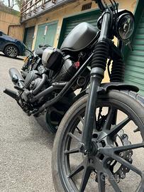 Vendo splendida XV950R ABS del 2015, fuori custom ma con il cuore e l'elettronica Yamaha, diversi accessori e particolari come: ammortizzatori posteriori doppi ohlins completamente regolabili, gomma anteriore praticamente nuova (meno di 500km), faro anteriore led, frecce anteriori e posteriori a scorrimento, puntale anteriore, manopole custom stile 883, kit pedane avanzate, borsa laterale, para marmitte neri verniciati a polvere, inserto stop led posteriore nero, parafango anteriore accorciato, doppi faretti led anteriori (al momento smontati ma completi di kit interruttore e cavetteria, devono solamente essere collegati), kit completo freno posteriore nuovo (sostituito l'anno scorso). Tutti i lavori di manutenzione sono stati effettuati in Yamaha quindi sono consultabili dallo storico del concessionario. La moto é marciante e non necessita di lavori.