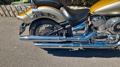 yamaha dragstar 1100 anno 2000, perfetto, appena tagliandata, batteria nuova. per anni è rimasta coperta in garage. era in uso a una persona che l'ha usata pochissimo e trattata in maniera maniacale. ora è molto anziano e non la può più guidare. revisione appena fatta, carrozzeria perfetta, motore come nuovo. 17 km con un litro, eccellente in ogni suo particolare. moto impossibile da trovare in questo stato.