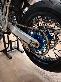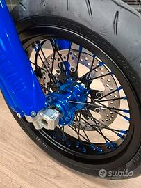 -ruote motard nr team-disco da 320 con distanziatore-paramani-corona 45 denti piu pignone 14 denti-gomme pirelli diablo rosso 3-parafango anteriore da supermotard