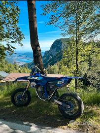 Moto in condizioni perfette. la moto è stata targata da VMRACING a maggio del 2022 -Motore appena rifatto con 35 ore all'attivo, e il tagliando sempre fatto ogni 12/15 ore. -scarico completo pro Circuit (lana del terminale sostituita al rifacimento del motore) -pacco lamellare V force 3R -filtro a pannello BMC -impianto frenante Brembo radiale, sposta pinza SP tubo in treccia accossato -piastre kite più da 200mm -mono ohlins ttx -cerchi excel motard -forcelle tarate motard -svariato carbonio su tutta la moto come: para disco posteriore, para pinza posteriore, Carter accensione, copri forcelle. -paramani procircuit la moto è in perfette condizioni mai utilizzata per fare cross. insieme cedo anche tutte le parti originali, compresi dischi e corone cross con i rispettivi cerchi. IL PREZZO È LEGGERMENTE TRATTABILE DOPO LA VISIONE