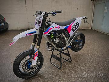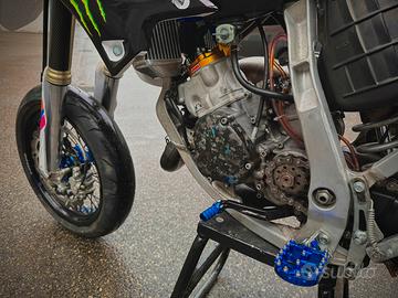 Le sospensioni sono state rifatte e tarate per uso motard e hanno 0 ore, idem le pastiglie dei freni.
