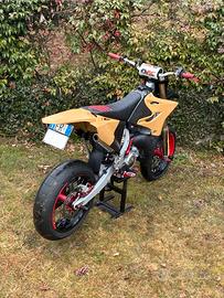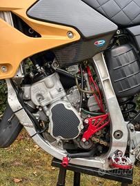 Vendo Yamaha YZ 125 2019, moto comprata usata da team ufficiale nel 2020. Sono stati eseguiti parecchi lavori nel ultimo anno: MOTORE: Il motore è stato rifatto interamente e al momento ha circa 40 ore di utilizzo in strada, monta: -cilindro ricromato e portato in selezione A da Athena racing -pistone vertex monofascia -testa originale leggermente rivista -albero motore Hot rods completamente nuovo e bilanciato -cuscinetti di banco Hot rods -cuscinetti del cambio Hot rods -paraoli e guarnizioni vertex -kit revisione pompa acqua -kit revisione valvola parzializzatrice -frizione nuova -volano leggero da cross -copri carter frizione trasparente -terminale procircuit OMOLOGATO -impianto elettrico semplificato CICLISTICA: Smontata completamente per ingrassare e sostituire tutti i cuscinetti, monta: -forcelle rifatte e tarate da Andreani group -revisionato boccole mono ammortizzatore -disco posteriore nuovo Motomaster -disco anteriore nuovo Motomaster con diametro 320mm -rapportatura corona 43(denti) pignone(12) e catena nuovi -cerchi motard completi Faba ESTETICA: -kit plastiche polisport colore sabbia e avantreno nero -verniciatura di molti componenti a polvere -paracolpi NK Neken -sella personalizzata Drip street -porta targa regolabile -copri serbatoio in carbonio di Pro-carbon racing IN PIÙ KIT CROSS: -coppia di cerchi cross (quindi con il posteriore da 18 pollici) -paramotore -disco posteriore -disco anteriore da 270mm con relativo sposta pinza -corona (50 denti) -catena La moto è immatricolata con tripla omologazione: motard, cross e enduro; omologata per il trasporto di due persone. Insieme alla moto ho un altro kit di plastiche completo graficato, un po di plastiche miste, V-face, porta targa originale, copri carter frizione originale in magnesio, pedane per il passeggero, un altro filtro per cross e altra roba. La moto ha appena tatto la revisione: regolare Per qualsiasi informazione contattatemi, prezzo trattabile dopo visione.