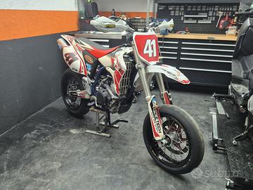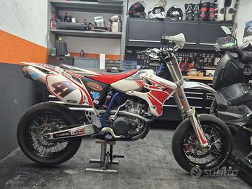Vendo Yamaha YZ 450F del 2003 allestita motard da pista, non targata, pronta all’uso senza bisogno di lavori. La moto monta i seguenti accessori: -Frizione antisaltellamento STM -Impianto frenante Beringer (kit pinza + disco) -Pompa radiale Brembo -Alberi a camme HotCams -Valvole in titanio -Scarico completo in titanio -Kit Dynojet -Cerchio anteriore da 16,5” -Contaore + rilevatore tempo sul giro Il motore ha 12 h dall'ultima manutenzione. Insieme alla moto fornisco molti treni di gomme all'80%, 3 diversi set di plastiche e ricambi vari Disponibile per ulteriori informazioni