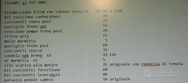 Vendo per inutilizzo Yamaha Yz 125 Anno 2002