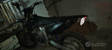 la moto è stata sempre tenuta bene e restaurata sia di motore, estetica e ciclistica la moto è cross e non immatricolata per uso stradale, vendo per inutilizzo la moto, monta uno scarico artigianale in carbonio eh con 165.9 ore in più cedo vecchie plastiche, e due pastiglie del freno nuove, usato pochissimo da quando la presi fatto qualche giro in enduro infatti dotata di faro davanti e dietro per la sicurezza fatto di recente anche spurgo davanti e dietro. il prezzo non è trattabile perché la moto non ha difetti ed è perfetta vendo a 2800 tondi tondi per info scrivere ( su wattsapp) o chiamare il 349 339 5708. grazie