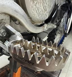 Accessori: paramotore, sella piramid, supporti motore FCP Racing in titanio ed alluminio aeronautico, pedane in titanio Scar, 4 filtri aria twin air, 3 corone 49-50-51, catena nuova, forcelle e mono preparate.