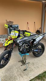 Vendo yzf 450 pronto pista del 2017 con 19 ore dal rifacimento totale del motore. La moto è preparata sia a livello di ciclistica che di motore con tantissimi pezzi da alto valore e qualità. La moto è stata bancata e sviluppa 59 cv alla ruota A livello di motore presenta: -camme della HOTCAMS -valvole in titanio -pistone alta compressione -frizione antisaltellamento -scarico completo DVR con mappa dedicata -cambio elettronico (attualmente staccato) Di ciclistica invece: -Forcelle e mono preparati da JBF per una persona da 75-85 kg -impianto frenante completo radiale beringer 4p -Cuscinetti di sterzo supermotard chiuso di qualche grado per inclinare l avantreno (200$ solo questa modifica) -piastre motard della XTRIG -piedini radiali -cerchi faba special edition NUOVI appena montati da 17-17 (volendo pronta per l omologazione) -forcellone tecstra -Pastiglie posteriori seminuove e quelle anteriori in buono stato -gomme racetec rr sm k1 anteriore e post verranno fornite nuove Reparto estetica abbiamo: -telaio e forcellone verniciati di nero -grafiche -paramani racetech gialli fluo nuovi - coprisella personalizzato -paracolpi racetech nuovo -leca companto frizione accossato -tamponi anteriori e posteriori -manopole nuove Ho un sacco di pezzi di ricambio da parte che fornisco alla vendita come componentistica originale del motore, impianto frenante completo originale yamaha, dischi frizione, piedini assiali, pignoni, 5 kit di plastiche, scarico completo originale, molle per taratura mono e forcelle e tantissimi altri accessori… Moto tagliandata ogni 5 ore, filtro aria in buone condizioni appena ingrassato così come la catena e liquido refrigerante nuovo. Moto pronta per correre, vendo per motivi di spostamento per lavoro. No offerte ridicole, no perditempo, no senzasoldi