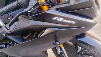 Vendo per passaggio a moto di cilindrata superiore bellissima Yamaha yzf r125,anno 2022, 10000 km, tenuta molto bene, ABS, gomme e liquidi a posto, Total black, portatarga sportivo barracuda, frecce led, come da foto, leggera abrasione su carena dx