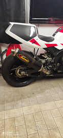 Innumerevoli accessori, carbonio, sospensioni appena revisionate, scarico akrapovic, telaietti autocostruiti, frizione antisaltellamento, cerchi marvic in magnesio, carene verniciate professionalmente.