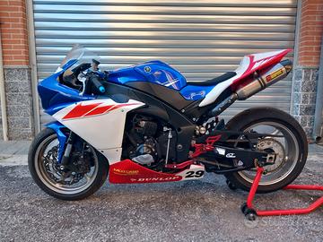 Yamaha YZF R1 2009 Pista Moto non targata ma con certificato di conformità. Motore da rodare, con su solo due turni. La moto monta: • Testa Lavorata • Camme Racing • Pistoni alta compressione • Scarico completo Akrapovic Evolution • Impianto Elettrico YEC • Centralina YEC • Cambio Elettronico YEC • Dischi Freno Braking • kit tubi freno • kit copri carte • Pedane arretrate bonamici • Kit trasmissione 520 • Cartucce Forcella • Piastre con of-set regolabile No scambi, si valutano eventuali permute