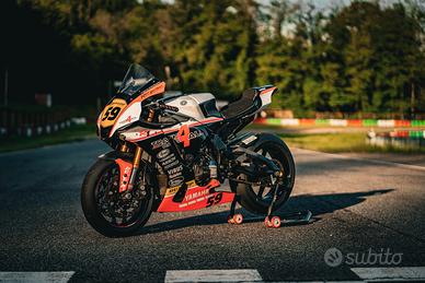 Carena Carbon-in in aviofibra con grafica GYTR 20th anniversary, Cover serbatoio in carbonio, Para telaio e para forcellone in carbonio, Parafango anteriore e posteriore in carbonio, Plexiglass WRS rialzato di 5cm, sella dedicata fatta su misura di 10mm con cuscinetto posteriore.