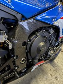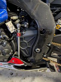 Carene, parafango e copriserbatoio Plastic Bike, kit ali R1 2025, plexi WRS, telaietto e condotto Febur, sella Race Seats, protezioni carbonio telaio/forcellone, protezioni GB Racing.