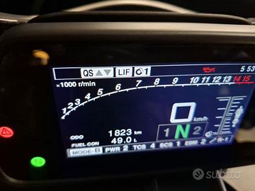 Accessoriata con: SCARICO AKRAPOVIC, PARATELAIO e PARAFORCELLONE IN CARBONIO.