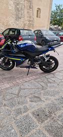 Yamaha yzf r125 tagliandata ogni anno e catena lubrificata ogni 1000km con varie modifiche: -scarico storm completo decatalizzato -filtro sportivo k&n lavabile -centralina aggiuntiva memjet evo regolabile -kit trasmissione trofeo modificata 15-48 con pignone da 14 nuovo -gomme dunlop sportmax q-lite sostituite a 19000km -sostituite pastiglie anteriore e posteriori più olio dot 4 -carene verniciate blu/griggie con tamponi -grafiche giallo fluo e altri adesivi -freccie a led -fari oscurati con luce bianca e luci di posizione blu -cupolino rialzato oscurato -specchietti al manubrio -leve freno frizione corte -tappi olio freni -manopole Damino -porta targa corto -batteria Cedo anche tutti i pezzi originali