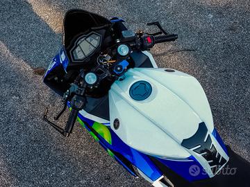 Si tratta di una moto unica, con carene personalizzate e non ce ne sono altre uguali in giro. Sono ispirate all'iconica Yamaha utilizzata da Valentino Rossi nel 2014 in MotoGP