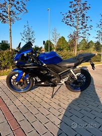 Vendo yamaha yzf r125 L’ultmo tagliando è stato eseguito a 42 mila km e sono stati effettuati aggiuntivamente: pulizia completa forcelle, cambio olio e ritaratura controllo gioco valvole cambio di catena corona e pignone cambio dischi frizione La moto monta i seguenti pezzi: scarico completo akrapovic (omologato) porta targa sportivo originale yamaha frecce nano led yamaha (sia anteriori che posteriori) cupolino fumé specchietti stealth (cedo anche quelli originali) leva frizione regolabile sempre tenuta in garage e tagliandi eseguiti regolarmente, presento tutte le fatture se richiesto Per qualsiasi informazione non esitate a contattarmi