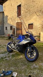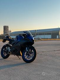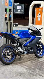 Vendo Yamaha R125, tutti tagliandi fatti, ancora in garanzia, specchietti ad ala, porta targa sportivo e scarico completo MIV con db killer rimovibile. Cedo anche: -specchietti originali -porta targa originale -scarico originale