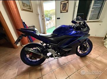 Vendo a malincuore per inutilizzo, Yamaha r3 2024 . La moto è come nuova 2533km. Ha ancora 6 anni di garanzia, tenuta sempre al chiuso. Monta terminale Akrapovic, do insieme i suoi pezzi originali; scarico, porta targa e specchietti.