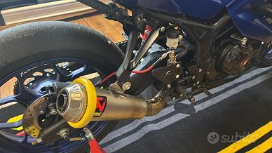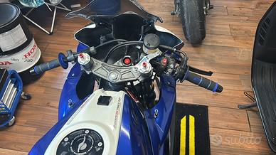 vendo r3 pronto pista targata: monta: mono e forcelle yss pedaline arretrate valter moto sella nuova kit carene vetroresina kill swith jet prime piastra e semi manubri ribassati tamponi para telaio, cavalletto e semi manubri logitech impianto frenante anteriore brembo con tubi in treccia anteriori e posteriori scarico completo akrapović tappo serbatoio racing sganci rapidi nelle carene tagliando appena fatto con 0 uscite corona di ricambio con dentatura più grande moto tenuta maniacale e lavori necessari fatti man mano con manutenzione costante vendo per cambio di categoria e non necessitá quindi astenersi offerte ridicole. per qualsiasi informazione 3338984165 federico