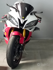 Vendo Yamaha YZF R6 con i seguenti optional: ammortizzatore di sterzo WP con 32 regolazioni, cupolino da corsa, specchietti sportivi,fari bxenon, alette areodinamiche anteriori carbonio, filtro aspirazione sportivo, assetto ammortizzatori regolabilie onlins,leve freno frizione sportive regolabili+ coppia protezione leve carbonio, indicatori di direzione led ,coppia pneumatici Pirelli (Diablo super corse) Mono posto,porta targa alluminio regolabile,dischi freni anteriori posteriori Brembo, Cambio con Yamaha YZF R1 Big bang, non Trattabile.