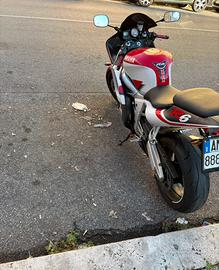 Vendo splendida yamaha R6 del 2000 a carburatori 40.000 km (o poco meno) iscritta ASI (assicurazione ridotta) tagliandata e gommata Tubi in treccia Scarico completo Giannelli Cavalletti alzamoto Faro e freccie a led Piú tutti i pezzi per riportarla completamente originale Prezzo leggermente trattabile o scambio com moto di mio gradimento NO PERDITEMPO