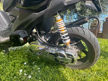 motore:cilindro 70 top trophy bifascia in ghisa da finire di rodare, albero originale nuovo con cuscinetti skf pacco lamellare malossi vl14,carburatore del orto 21 phbg,filtro a torta malossi,variatore polini hi speed quello con paraoli,ventolino malossi mhr ventilvar,frizzione malossi fly mollette e molla malossi,cinghia stage 6 in kevlar,campana malossi, scarico gianelli shot v4 nuovo, centralina motorforce,radiatore aggiuntivo phantom e conta temperatura koso con pulsante on/of(i carter sono originali e non lavorati). ciclistica:pinza e disco rpm maggiorati disco da 280 e pinza 4 pistoncini,tubi in treccia anteriori e posteriori pinza freno posteriore brembo con pastiglie nuove malossi,ammortizzatore motorforce,pneomatici seminuovi sostituiti da poco della dunlop. estetica:copri accensione str8 nero con pompa maggiorata stage 6 anodizata blu,copricarter cromato t4 tune,specchietto pieghevole,gas rapido tommaselli,manopole domino,fanale posteriore str8 a led con frecce incluse. revisione ok il motore e stato rifatto da pochissimo tutti i componenti elencati anno al incirca 10 ore di utilizzo tutto da rodare ancora anche laccensione ne e stata messa una originale ma nuova limpianto eletrico completamente funzionante la batteria e appena sostituita.insieme allo scooter do il kit completo di carene originale con un sottopedana in piu la maggior parte dei pezzi del motore per riportare lo scooter originale e tanti altri pezzi generali come rulli molette filtri ecc