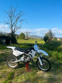 vendo bellissima yz 125 1992 NON targata( si può targare da VTR immatricolazioni), il motore è sempre da rodare e all attivo ha 5.0 ore rifatta completamente da O partendo dal motore con un bellissimo pistone vertex monofascia nichelato insieme al suo cilindro nuovo. sono stati cambiati tutti i cuscinetti del forcellone e i leverismi. mono ammortizzatore e forcelle anteriori revisionate da bacci suspension, trasmissione completamente nuova. parte frenante completamente nuova( dischi nuovi, pastiglie nuove e le pinze tutte e due revisionate. gomma posteriore si può dire sempre ottima, ed é una moose NON ha camera d aria, gomma davanti appena montata nuova carburatore revisionato ed é tutto nuovo carene ufo nuove. tutte queste informazioni sono dimostrabili con fatture prezzo poco trattabile