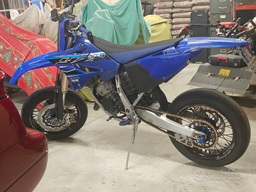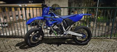 yz125 tripla omologazione ad project possibile giuidarla con patente A1. La moto monta un kit motard completo che comprende: cerchi faba tubeless da 17 gommati con Continental conti attack sm2 con si e no 60km,forcelle e mono preparati da motard da noto sospensionista di zona, impianto frenante davanti maggiorato con pompa adelin 14*18 disco 320mm flottante Sp garage spostatinza vmracing e pinza Brembo m50 e tubo su misura, sul posteriore pompa freno nuova sostituita a causa rottura disco nuovo pastiglie nuove e pinza revisionata, rapporti 13/44 con corona motomaster. La moto é pronta per circolare con già impianto elettrico autonomo con batteria dedicata, che é possibile ricaricare dall'esterno con blocchetto chiavi, fari frecce clacson contachilometri e idrostop avanti e dietro. La moto é dotata di alcune powerparts come leva frizione e leva cambio nrteam plastiche e grafiche sono state completamente sostituite e sono nuovi, scarico hgs completo, pedane anodizzate, radiatori gpi con tubi siliconici, cavalletto vmracing laterale carter frizione boyesen e carter accensione stampato in 3d, sul forcellone dietro ci sono i nottolini per cavalletto centrale con tamponi stampati in 3d. Per quanto riguarda la meccanica la moto ha 37.7 ore di pistone sostituito dal precedente propietario mentre il motore ha in totale 90 ore, frizione nuova carburatore revisionato filo acceleratore e filo frizione nuovi lana vetro silenziatore nuova ed é stata effettuata una pulizia da bave di fusione al cilindro. Insieme alla moto cedo kit cross, altri kit plastiche vari scarico originale freno originale davanti inclusi nel prezzo. PREZZO TRATTABILE.