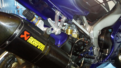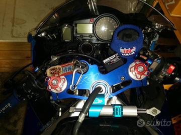 Come da titolo vendo r1 completamente chittata dalle sospenzioni,hollins,serbatoio in catbonio, acceleratore rapido,regolatore a filo freno anteriore,centralina di anticipo yec,ammortizzatore di sterzo,frizione antisaltellamento stm, cerchi in magnesio marvic,pompe freno discacciati,stechilometro,scarico completo 4-1,freni brembo serie oro ,cambio elettronico translogic, pedane walter moto, catena passo 520, piastra di sterzo, contamarce,pistoni jr alta compressione,bielle, testata flussometrara cemes, carburatori con kit dayno step 3 e credetemi dimentico altri accessori... la moto tiene il libretto quindi puo' essere assicurata,e rientra pure in moto