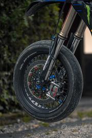 vendo a malincuore yzf450 2019 motard per passaggio a categoria superiore la moto e stata revisionata da me da cima a fondo apportando modifiche importanti MONTA cerchi faba da 17 gomme supercorsa v3 120/ 160 disco 320 accossato pinza brembo m50 pompa 16×18 acossato spostapinza VM scarico completo akrapovic. titanio cambio elettronico healtech con cablaggio dedicato termica rifatta con foto e ricevute (pistone vertex con 15 ore biella prox 15 ore ) cambio olio e filtro ogni 7 ore INSIEME ALLA MOTO POSSO DARE qualche litro di olio nuovo rimanente piu o meno 10 filtri olio nuovi plastiche originali impianto frenante originale ed altri ricambi originali che non ricordo *posso dare cerchi cross con aggiunta* scambierei volentieri con aprilia rs660 depotenziata tag : yamaha yzf motard supermotard stradale scarico completo cross scambio