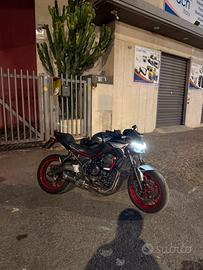 Vendo z650 unica depo a libretto 35kw e rimappata a 66cv alla ruota, ma guidabile con patente A2. La moto è come nuova, i km sono all'attivo poichè la uso ancora per andare all'università. Nessun lavoro da fare. Traction control su due livelli e disinseribile ed abs. Catena cambiata da 6mila km e fatta manutenzione ogni 500km. Gomme michelin power gp 2. Pastiglie brembo blu cambiate da poco. Vendo a malincuore. Prezzo NON trattabile Monta i seguenti accessori: - Scarico completo roads italia 500? - Filtro sportivo 100? - Mappata sul banco prova (66cv alla ruota) 500? - Leve z650 nere con scritta bianca - Tamponi paratelaio originali kawasaki 240? - Nottolini z650 rossi - Specchietti bar end 60? - Manubrio SRT piega media 75? - Tappini specchietti z rossi - Griglia pararadiatore z originale kawasaki - Pellicola protettiva display originale kawasaki
