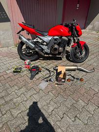 Vernice leggermente rovinata zona serbatoio e qualche graffio sparso qua e là , carter e scarico grattati , spia FI accesa ( poiché ho rimosso le farfalle secondarie , sensore tps e attuatore corpo farfallato che è un noto difetto su questa moto)