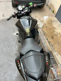 vendo z750 2009 depo a libretto 25kw A2 per cambio tipologia con circa 40k km all'attivo. motore cambiato dal vecchio proprietario ancora in garage che posso cedere. la moto monta diversi accessori, fra cui tubi in treccia anteriore e posteriore, portatarga sportivo, frecce anteriori aftermarket e posteriori integrate al fanale posteriore fumé, manubrio piega bassa, terminale in carbonio roads italia con db killer estraibile (500?), collettori decatalizzati arrow (600?), centralina aggiuntiva sc project (200? circa), filtro aria sportivo lavabile, selle personalizzate tappezzeria italia (250?), Carena para collettori (100?), leve e manopole aftermarket, conta marce elettronico aftermarket, fari abbagliante e anabbagliante sostituiti da poco, catena did serie oro regolarmente lubrificata, pastiglie freni nuove (19/12/2025). Presenta qualche piccolo segno di scivolata a bassa velocità come si vede in foto, prezzo leggermente trattabile, disponibile alla visione.