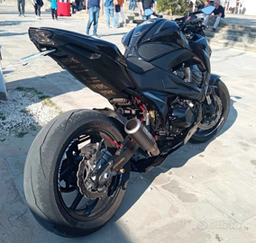 Moto tenuta come un figlio. Nel prezzo sono compresi tutti i pezzi originali. Ha più di 3000? di accessori. Comprende 3 cupolini(2 rizoma,1fabbri)+pezzo in carbonio per chi non vuole montare il cupolino,parafango anteriore in carbonio(vero) posteriore effetto carbonio con retine oro,2 puntali 1grande e 1piccolo, 2unghie monoposto(1liscio come il codone da pista), varie parti effetto carbonio, manopole e bilancieri barracuda,varie leve freno e frizione, tubi in treccia Accossato rossi(compreso quello del Abs)2 scarichi(Termignoni in carbonio, Ixill x55)kit trasmissione Did 520 con un dente corona in più,pedane arretrate regolabili con pedane passeggero removibili fatte su misura artigianali(uniche al mondo)tamponi para telaio,conta marce, luci bianche e stop fumè con frecce integrate, viti in ergal oro,2 paia di specchietti(1Rizoma e 1End bar)sella in alcantara con cuciture rosse ecc.Il prezzo è trattabile in base all'allest. Da concordare dopo visione, contattare Antonio 3478614425