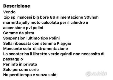Vendo zip sp malossi big bore 86 Nell ultima foto ce la descrizione dello scooter No perdi tempo e senza soldi Solo persone decise ad acquistare