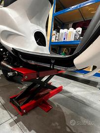 (Sospensioni 24/10R / albero -cilindro bigevo70/ trasmissione polini + variatore CVT/ ingranaggi 1-2 polini + carter ingranaggi polini / pvl polini / forcella ribassata / pompa derivazione cross/disco ant malossi- ganasce malossi / caburatore 21-pacco polini e filtro polini / strumentazione GPS tempi su pista + acqua e giri motore/ gomme pmt /kit carene in resina /