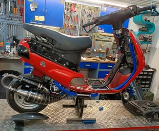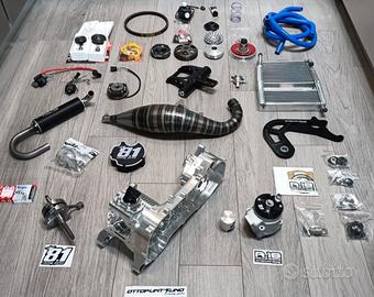 Zip sp1 100cc trofeo full 8.1 tutto modificato completamente nuovo, appena finito il rodaggio con 2/3 ore all'attivo, con il massimo di ogni componente che si può avere meglio di un trofeo: -motore completo 8.1 100cc: -carter 8.1 al CNC -cilindro completo 8.1 100cc -albero motore 8.1 -pacco lamellare e collettore 8.1 -scarico 8.1 -torsen 8.1 -ammortizzatore posteriore Malossi a gas rs24/10r -forcella anteriore Polini con cuscinetti conici Polini -ammortizzatore anteriore Malossi a gas rs24/10r -mozzo 8.1 blu -piedino 8.1 blu -pinza 8.1 radiale 4 pistoncini argento con pistoncini blu -braccio oscillante dell'ammortizzatore anteriore Stage6 -pompa freno 8.1 -tubo in treccia -accensione pvl -trasmissione Malossi furia rossa + ventolino 8.1 -rapporti completi Malossi -dell'orto vhst 28 con vaschetta alluminio -ganasce freno Malossi -radiatore maggiorato doppiato GDtech (uguale al Malossi) -Pompa acqua elettrica Malossi -tubi in silicone blu -telaietto Polini adattato -strumentazione mychron 4 -gas rapido -astina olio rapporti Malossi -alettone anteriore in carbonio -presa d'aria pinza freno -coprivolano 8.1 -slider -recupero fluidi