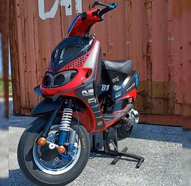 Zip sp1 100cc trofeo full 8.1 tutto modificato completamente nuovo, appena finito il rodaggio con 2/3 ore all'attivo, con il massimo di ogni componente che si può avere meglio di un trofeo: -motore completo 8.1 100cc: -carter 8.1 al CNC -cilindro completo 8.1 100cc -albero motore 8.1 -pacco lamellare e collettore 8.1 -scarico 8.1 -torsen 8.1 -ammortizzatore posteriore Malossi a gas rs24/10r -forcella anteriore Polini con cuscinetti conici Polini -ammortizzatore anteriore Malossi a gas rs24/10r -mozzo 8.1 blu -piedino 8.1 blu -pinza 8.1 radiale 4 pistoncini argento con pistoncini blu -braccio oscillante dell'ammortizzatore anteriore Stage6 -pompa freno 8.1 -tubo in treccia -accensione pvl -trasmissione Malossi furia rossa + ventolino 8.1 -rapporti completi Malossi -dell'orto vhst 28 con vaschetta alluminio -ganasce freno Malossi -radiatore maggiorato doppiato GDtech (uguale al Malossi) -Pompa acqua elettrica Malossi -tubi in silicone blu -telaietto Polini adattato -strumentazione mychron 4 -gas rapido -astina olio rapporti Malossi -alettone anteriore in carbonio -presa d'aria pinza freno -coprivolano 8.1 -slider -recupero fluidi