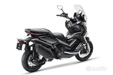 Nuovo Zontes 368 G ADV -Telecamera anteriore e posteriore -MANOPOLE RISCALDATE -Sistema di controllo KEYLESS 3.0 -Faretti aggiuntivi e protezioni laterali -porte USB a ricarica rapida -Doppia pedana per la guida sia scooteristica che in piedi -Strumento con schermo LCD a colori TFT -Sistema di controllo pressione pneumatici -Doppia modalità di guida ECO e Sport Monocilindrico Raffreddato a liquido, SOHC 4 CILINDRATA 368 CC RAPPORTO DI COMPRESSIONE 11,8 : 1 POTENZA MASSIMA 28,5 kW @ 7.500 rpm COPPIA MASSIMA 40,0 Nm @ 6.000 rpm ALIMENTAZIONE Iniezione elettronica CAPACITÀ SERBATOIO (Riserva) 17.5 l (1.8 l) ALTEZZA SELLA 795 mm INTERASSE 1.560 mm LUNGHEZZA MASSIMA 2.230 mm ALTEZZA MASSIMA 1.470 mm LARGHEZZA MASSIMA 925 mm ALTEZZA DA TERRA 180 mm FRENO ANTERIORE A disco con ABS FRENO POSTERIORE A disco con ABS SOSPENSIONE ANTERIORE A steli rovesciati SOSPENSIONE POSTERIORE Doppio ammortizzatore COPERTURA ANTERIORE 110/70 - 17 COPERTURA POSTERIORE 150/70 - 14 CONSUMI l/100km* 3,5l/100km EMISSIONI CO2 [g/km]* 79 g/km