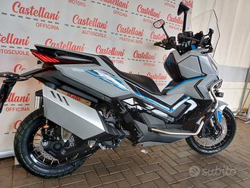 Loscooter dall'anima adventure per affrontare qualsiasi strada Zontes368G, lo scooter adventure che combina un motore monocilindrico da 368 ccraffreddato a liquido (con 38,7 CV e 40 Nm di coppia) con una ciclisticapensata per essere versatile, sia su asfalto che su sterrati leggeri. Offredotazioni avanzate come barre di protezione, faretti LED, telecamere integrate,parabrezza regolabile, strumentazione TFT, ABS, controllo di trazione e unampio vano sottosella.