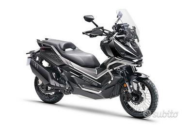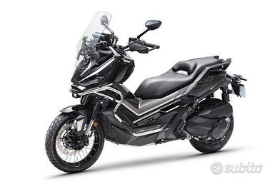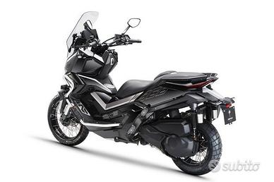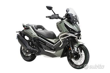 Scooter ADV ZONTES ZT368T-G E5+ con motore monocilindrico raffreddato a liquido, DOHC 4 , potenza massima 28,5 kw (38,7hp), consumi 3,5lt100km, serbatoio 17,5lt., telecamera ant. e post, doppia mappatura (Sport o Economy) forcelle a steli rovesciati 41 mm., manopole riscaldate, doppie sospensioni post. regolabili, ABS disinseribile al posteriore, TCS disinseribile al manubrio, 3 prese USB, faretti, sensore pressione pneumatici, ruote a raggi da "14, vano da 52lt. per 2 caschi integrali., peso kg.198, altezza sella 795mm.Disponibile nei colori nero, blu o verde al prezzo di Euro 6.490,00 escluse spese imm. e m/strada Euro 400,00. Vi aspettiamo in concessionaria!