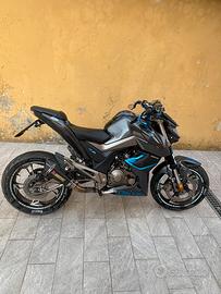 Zontes ZT 125 U dotata di specchietti laterali blu,marmitta fake carbon, portatarga logato zontes,frecce dinamiche e lievi graffi.