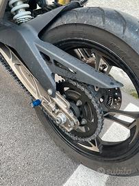 La moto monta scarico omologato GPR M3 Inox (700€), portatarga corto, e gomme diablo rosso II. È stata revisionata l'estate scorsa e il kit di trasmissione (catena corona e pignone) è stato sostituito a inizio inverno (a circa 9000km) con parti originali Zontes da un meccanico certificato Zontes. È possibile venirla a vedere e provarla in zona Milano sud (vigentino) e prima di consegnarla le farò fare un tagliando per buona misura, anche se non ha mai avuto problemi meccanici. La moto ha un sistema keyless e sono ancora in possesso di entrambe le chiavi elettroniche.