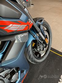 ZONTES 125 UFlessibile, agile, maneggevole e piena di elettronica: ti offre grande libertà di guida e più spinta grazie al motore ad elevato rapporto di compressione raffreddato ad acqua.Keyless control systemIl sistema keyless (senza chiave) agisce sbloccando la moto già a 1.5 metri di distanza, permettendo di tenere il trasponder comodamente in tasca o nello zaino. Il funzionamento è lo stesso anche dopo l'utilizzo: basta allontanarsi 1.5 metri e la moto non può più essere avviata.Funzionamento elettricoTanta elettronica su questa 125cc: coperchio elettrico del serbatoio, chiusura elettrica del sellino e bloccasterzo elettrico. I pulsanti sono distribuiti a destra e a sinistra del manubrio, per una maggiore facilità d'uso per il conducente.Dotata di ABSIl sistema anti-bloccaggio conferisce al motociclista sicurezza di gestione della moto in caso di situazioni impreviste, anche in presenza di sabbia o ghiaccio sulla strada.Luci a LEDLe sorgenti luminose a LED di tipo automotive emettono una luce naturale; il rivestimento fotopolimerizzante e anti-nebbia previene l'ingiallimento e l'appannamento del paralume; il guscio posteriore del faro in lega d'alluminio pressofuso integrale migliora notevolmente l'efficienza di dissipazione del calore, l'illuminazione del campo visivo, diminuisce il decadimento luminoso e aumenta la durata.Controller digitale intelligente con display a cristalli liquidiGli indicatori della velocità, che si contraddistinguono per l'estetica elegante, sono disposti in progressione sul controller digitale intelligente a cristalli liquidi per essere ben visibili.