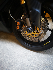 Monta : pedane arretrate Zetasassi, pompa anteriore Brembo 19 rcs, pinze anteriori di provenienza R1 ( presenti anche le originali), monoammortizzatore Mupo ab1evo con precarico idraulico ( presente anche l'originale), scarico GPR omologato ( presente anche l'originale) ammortizzatore di sterzo ohlins, tamponi paratelaio ( senza bucare le carene) e paraforcella, portatarga e freccie sportivo e manopole domino.