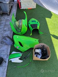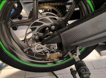 Vendo zx6r modello 2005-6 non Immatricolata, con fattura telaio ( no bollo, no passaggi di proprietà) la moto ha un problema al cambio, probabilmente forchette cambio ma non è stata aperta, è ferma da quando si è presentato il problema. Vendo per immediato realizzo ed inutilizzo Moto sempre tagliandata regolarmente ogni 3 giornate in pista ( circa 300-400km) o annualmente se inutilizzata. Prima del problema al cambio il motore era stato ripulito e revisionato completamente dal precedente peoprietario (circa 1500-2000km fa) Forcelle e mono revisionate 400km fa La moto monta innumerevoli accessori ed ha anche innumerevoli pezzo di ricambio che vendo insieme alla moto: -2 set completi di cerchi + cerchio posteriore OZ piega R (accordarci a parte sul prezzo) -3 set di dischi: originali, 310 braking, 320 super sport -scarico completo gara akrapovic -gas rapido -brembo rcs 19 -pedane arretrate bonamici + pedane di scorta valtermoto -mono ohlins stx 46 -Pinza posteriore ap racing con registri e disco posteriore alleggerito -dashboard my chron 3 aim -2 set di carene (ora ci sono quelle verdi montate sulla moto) -accensione motore alleggerita -batteria al litio -2 cupolini -pinze monoblocco tokico derivate da cbr 1000 -trasmissione 520 Come ricambi ho anche: -forcellone scorta ninja 2008 -telaietto posteriore ninja 2008 -mono ammortizzatore originale 2008 Con la moto cedo tutto quello che ho compresi ricambi, accessori, termocoperte termal technologies. Rimango disponibile per qualunque altra informazione riguardante la moto, contattare preferibilmente via whatsapp o tramite subito NO PERDITEMPO NO AFFARISTI