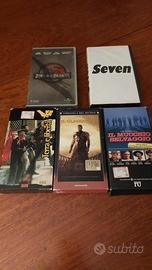 10 videocassette per adulti : La mummia - Terra e Libertà - Il mucchio selvaggio - AI intelligenza artificiale - Il gladiatore - Totò Peppino e la malafemmina - Sette anni in Tibet - Jurassic Park III - Un pesce di nome Wanda ( ancora imballato ) - Seven .