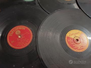Lotto 11 dischi per grammofono Sono dischi simili ai vinili ma più pesanti e rigidi e perciò credo che siano in gommalacca Non testati (venduti come visti e piaciuti). Integri, senza crepe , ma da pulire .